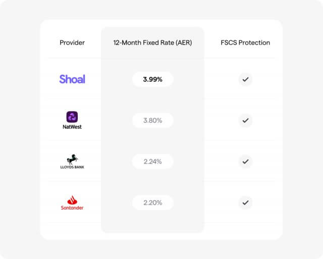Shoal’s rates are among the most competitive in the UK – 3.99 per cent AER for a 12-month fixed-term business or personal account. That’s as good or better than many of the biggest high street names: